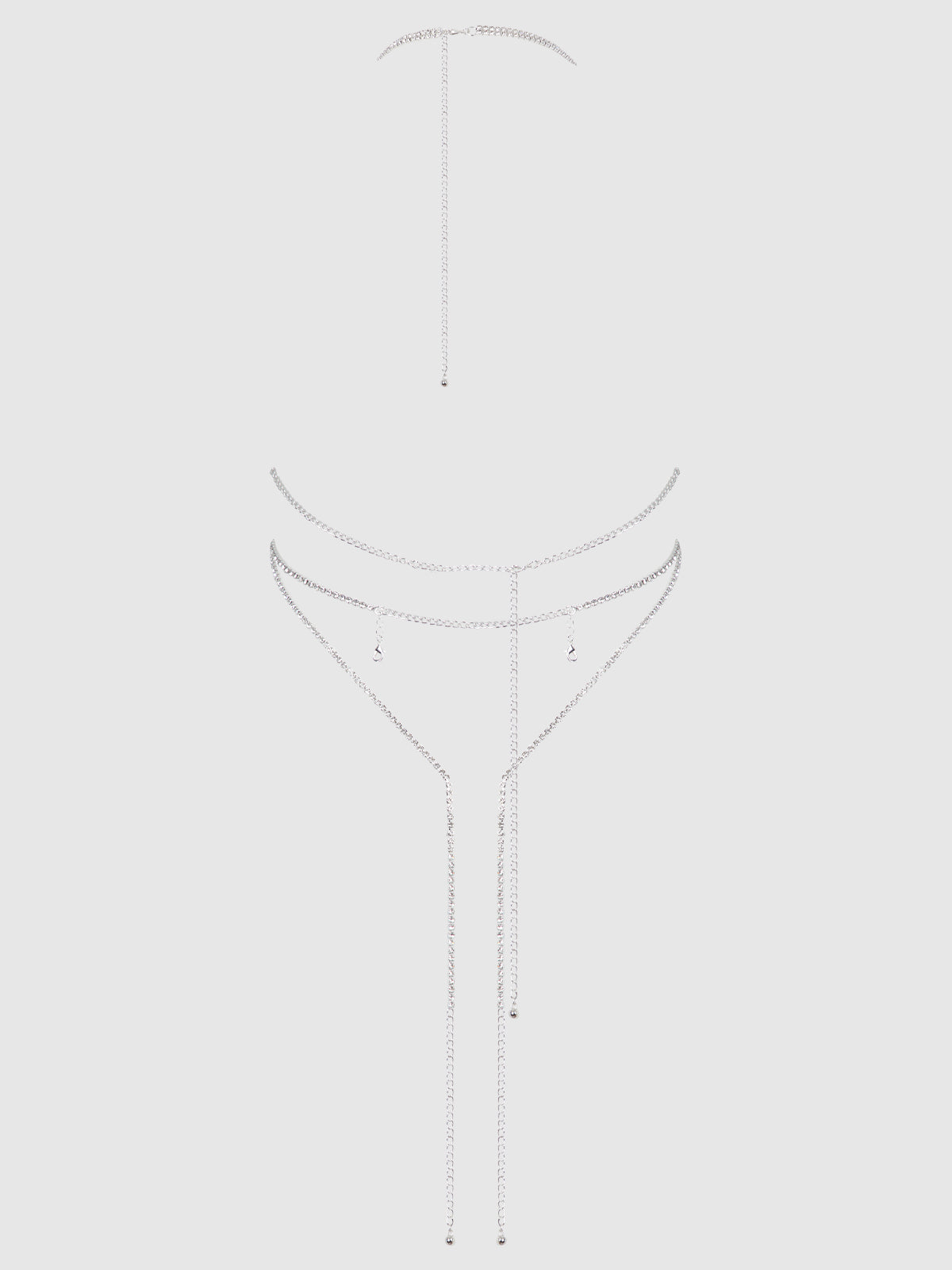 Low cut, all-over sparkles, and a barely-there silhouette. This Rhinestone Plunge & Fringe Teddy is the bedroom accessory of your wildest dreams. Glam up with dazzling stones and drape on your curves for a show-stopping look. Sultry perfection in the prettiest package.