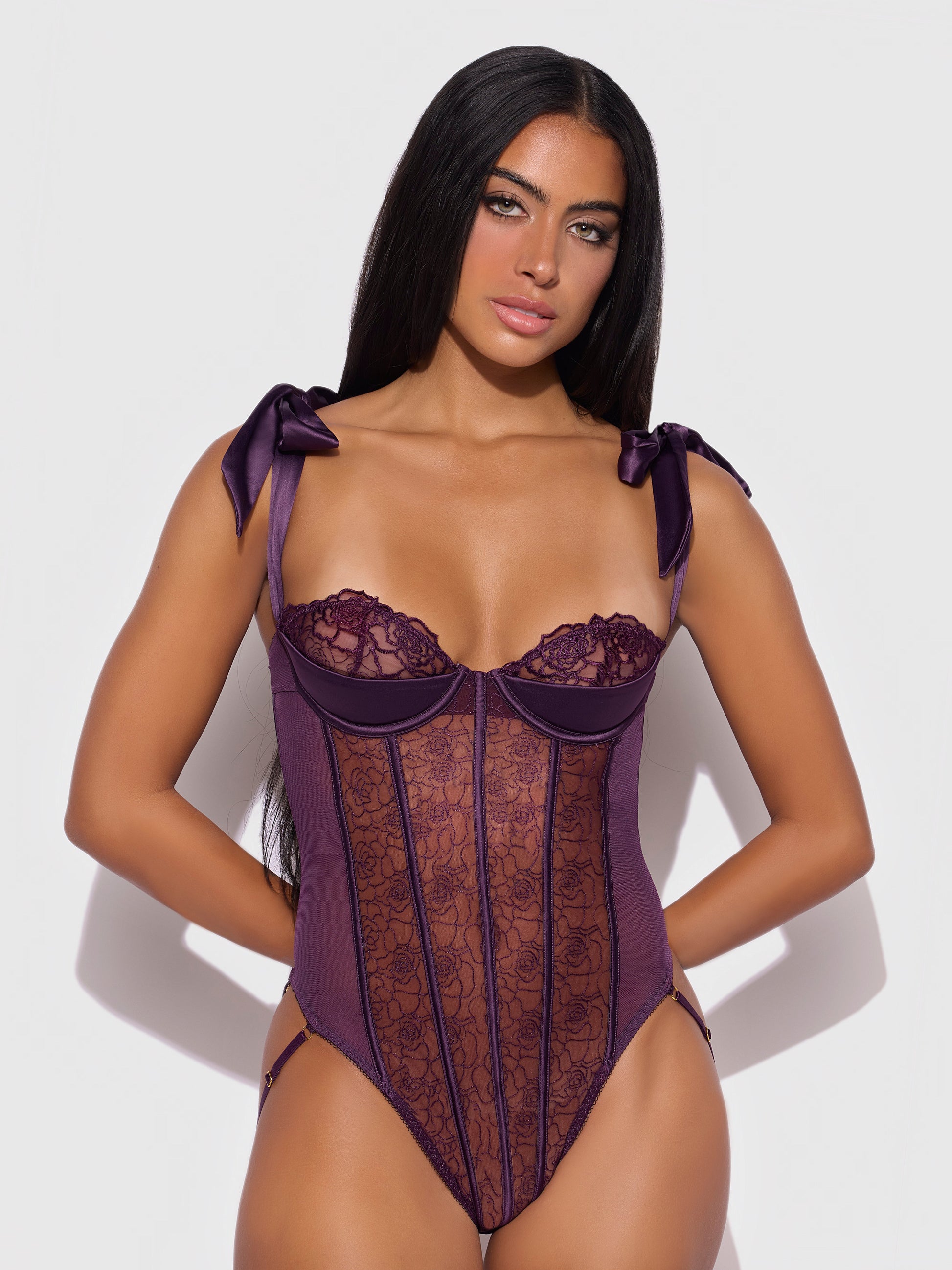 House of Desire Rosalie Embroidered Lace Teddy Roses Purple Shadow